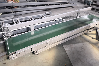 分料(liào)超(chāo)寬裙邊PVC皮帶輸送機 分料超(chāo)寬裙邊PVC皮帶輸送機 2.5米寬裙邊(biān)PVC皮帶輸送機 帶寬2.5米,機器長度1.5米 用於料倉中的物料均勻分料 上一篇:直線型-Z字型(xíng)群邊皮帶輸送機對接 下(xià)一(yī)篇:小型Z型提升上料裙邊輸送機